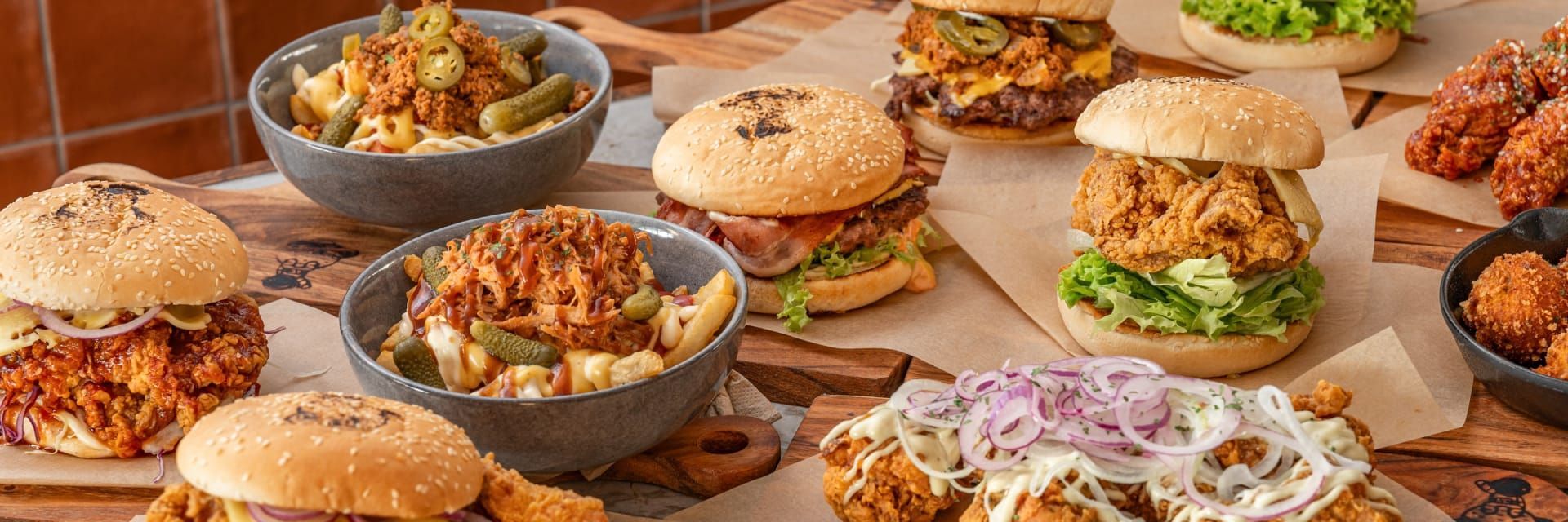 Try our Korean & American style burgers, we have Korean chicken as well as jalapeno cheese balls, fries, and loaded fries on the side. We're always welcome